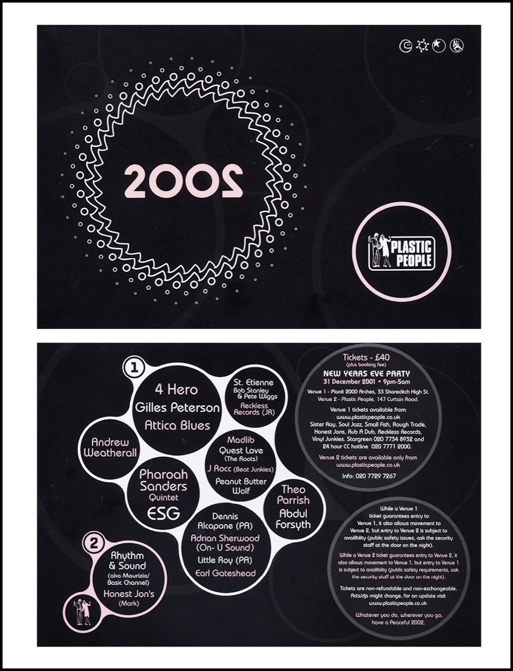 The event took place in a disused warehouse (?) at the southern end of the Shoreditch triangle (we’re still talking of a largely pre gentrified Shoreditch) and featured, amongst others, Pharoah Sanders and E.S.G. (both live), Rhythm & Sound, Little Roy, Madlib, Andrew Weatherall, 4 Hero, ?uestlove, Theo Parrish….